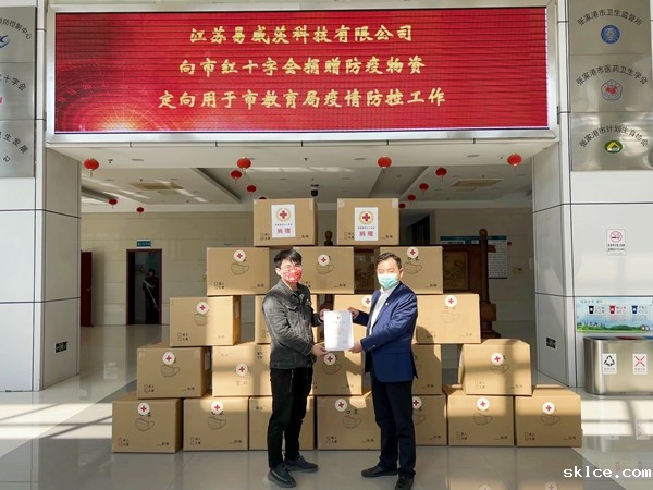 2月25日下午,江苏易威茨科技有限公司通过张家港市红十字会捐赠 7200只一次性防护口罩和48000只儿童口罩,总价值27840元,定向用于市教育局新冠疫情防控工作。