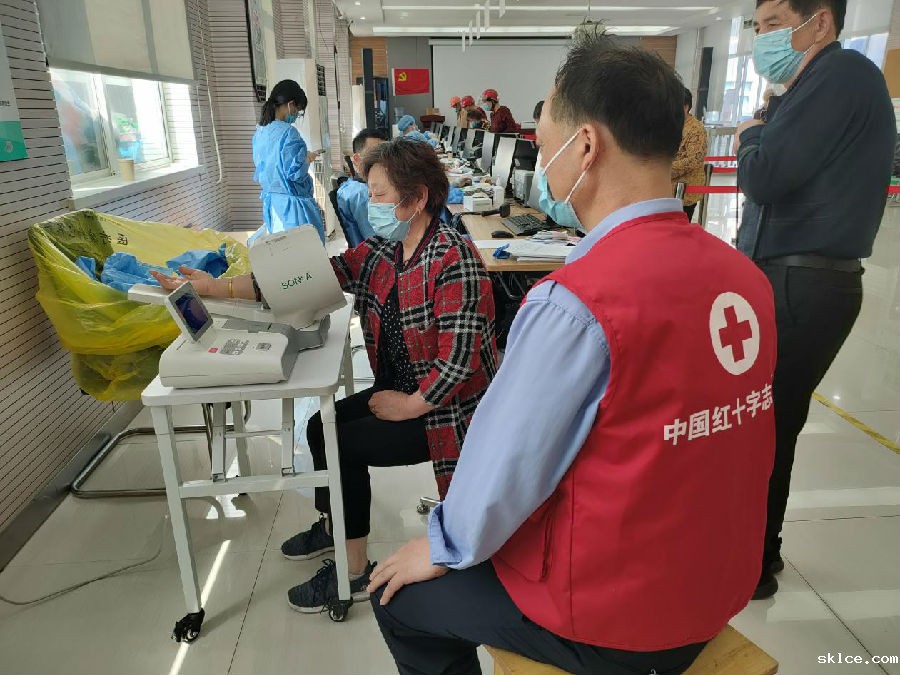 红十字志愿者早早就到岗,在现场维护秩序,引导前来接种的老人依次排队、出示身份证、查看苏康码、行程码,减少人群聚集及缩短等候时间等,并帮助老年居民测量血压,切实做好疫苗接种协助工作。
