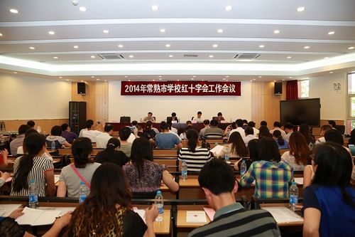 为认真贯彻落实国务院《关于促进红十字事业发展的意见》,弘扬“人道、博爱、奉献”的红十字精神,进一步激发红十字学校的活力,提升学校红十字工作的制度化、规范化水平,5月28日下午,常熟市召开由全市97所学校红十字工作的分管领导及校红十字会秘书长等150多人参加的2014年常熟市学校红十字会工作会议。常熟市政府副市长、市红十字会会长陶理,市红十字会常务副会长顾丽华,市教育局副局长、市红十字会副会长陆培新,常熟理工学院团委领导葛田出席会议。顾丽华副会长主持会议。