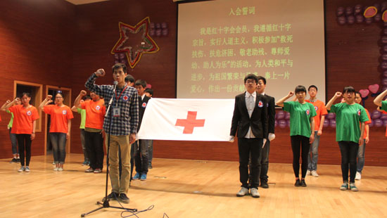 活动由300多名新会员在红十字会会旗下庄严宣誓仪式开始,新会员代表发言,表达了对红十字的向往和志愿加入红十字组织的愿望。学校副校长、校红十字会常务副会长王炯为新会员讲述了红十字运动起源,寄语新老会员要弘扬“人道、博爱、奉献”红十字精神。
