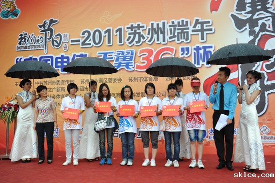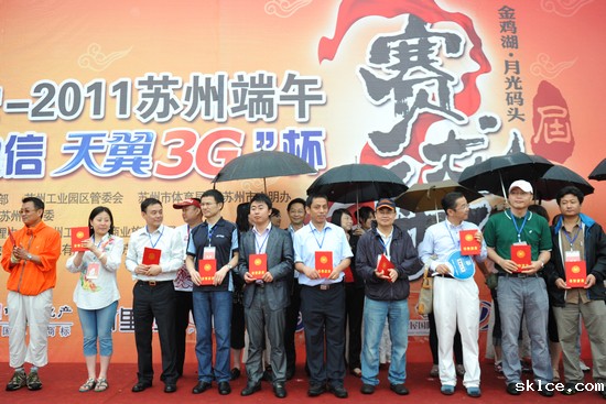 6月6日上午,端午佳节之际,来自苏州的各大外资企业、外地商会及企事业单位的共37支龙舟队在大雨中激情开战金鸡湖,近万名市民冒雨到场呐喊加油!