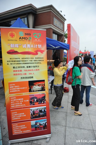 来自超威半导体技术(苏州)有限公司、快捷半导体(苏州)有限公司,腾飞新苏置业(苏州)有限公司,吉田建材(苏州)有限公司,洲际酒店,苏州尼盛万丽酒店,新宇航空制造(苏州)有限公司,农业银行姑苏分行,百得(苏州)科技有限公司,苏州同里红酒业有限公司,上海万视家生物科技有限公司苏州办事处等10余家爱心企业在现场进行了慈善义卖并将义卖所得的36677.70元悉数捐给我会。