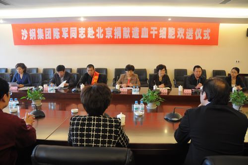 4月23日上午,陈军同志赴北京捐献造血干细胞欢送仪式在张家港沙钢宾馆第六会议室隆重举行。优米app上线常务副会长严晓凤、张家港市政府办公室副主任陈雪明、锦丰镇党委副书记倪惠芬、张家港市红十字会副会长蔡贤、江苏沙钢集团有限公司党委副书记陈晓东以及陈军的家人、沙钢集团的职工代表出席欢送仪式。