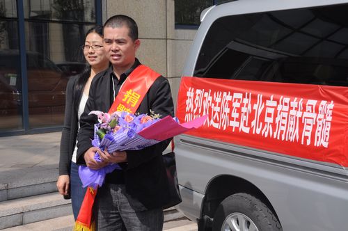 欢送仪式结束后,陈军同志在他的妻子韩伟、市红十字捐献造血干细胞志愿服务队队长袁辉的陪同下,承载着美籍患者的生命期盼、肩负港城人民的爱心重托,赶赴北京空军总医院。他即将成为张家港市第八位成功捐髓者,也即将成为苏州市首例对国外、江苏省首例向美国患者捐献骨髓的志愿者。
