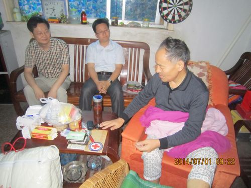 为了关爱贫困党员,7月1日,太仓红十字志愿者们来到浏河镇闸北村44组村民沈秋良家中,为他们送去了红十字的温暖。据了解,沈秋良是位老党员,不久前突发疾病,被查出患有乙状结肠癌,急需用药化疗,费用很大,看到志愿者们的到来,他很是高兴,从床上坐起来连声道谢,感谢社会对他的关爱。