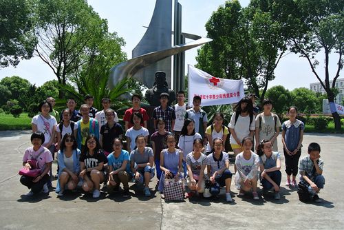 第二天的中学组走进了巴城老街,感受老房子里水乡生活情调。孩子们在临河古镇的石板街上沿街欣赏一个个朱红色底漆金字招牌的铺面——春和面馆,义隆渔行,茶楼,生生堂药店……并在导游的带领下领略了昆石馆、巴城蟹文化博物馆、江南木雕馆等特色景点风光。笛馆里那些竹笛、玉笛、骨笛、弯管笛等上百种笛子更是吸引了无数目光,特别是一支需要几个人抬的号称“天下第一笛”大铜笛让孩子们大开眼界,纷纷拍照留念。在下午的活动中,队员们还参观了航天英雄费俊龙陈列室,学习了红十字知识及急救知识,加深对红十字运动的了解,养成关爱他人、奋发向上的优秀品质。