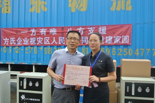 8月3日,云南昭通鲁甸发生6.5级地震,造成巨大的人员伤亡及财产损失,灾难牵动着每位中华儿女的心。方氏纳米能量科技有限公司的董事长方建新想到灾区卫生状况亟待改善,饮用水必然会受到严重污染,他主动联系昆山市红十字会,表示愿意向灾区捐赠一批饮水设备,帮助昭通鲁甸灾民渡过难关。这已不是该企业慈善首举,早在去年4月,他们就通过昆山市红十字会捐赠价值约40万元的直饮水机16台,用于雅安地震救灾,充分表达了对灾区人民的深情厚谊。