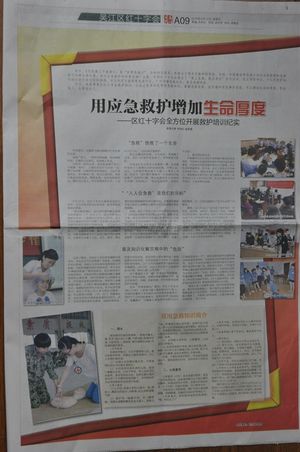 9月12日,吴江区红十字会在吴江日报上刊登专版,聚焦区红十字会救护培训,以此让更多市民学到急救知识、掌握急救技能,在灾难和突发事件面前,可以增加生命的厚度,帮助他人,也帮助自己。