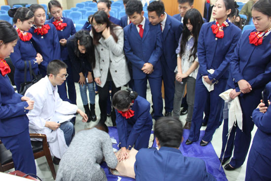 按照培训大纲的要求,授课老师为学员讲授了心肺复苏和创伤救护等现场救护原则和方法。准空姐空少们第一次接触救护培训,对各种包扎方法很感兴趣,对人体模型有些好奇,看似简单的心肺复苏对很多人来说是个技术活,人工呼吸多少有些不好意思,经常不得要领,在授课老师的指导下,经过反复练习,逐个把关,100多名学员最终通过考核测试。