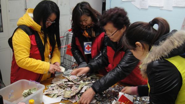 由于红十字募捐箱设置在超市的出口处,标志醒目,宣传口号响亮,这里成了顾客奉献爱心的一个平台。广场王店长介绍,在平日,一些顾客将找得的零碎硬币方便地投入了红十字募捐箱;在节假日,一些父母带孩子逛超市,也把奉献爱心作为对子女品德教育的最好现身说法。在这次清点的善款中,不仅有总量多的一角硬币近万枚,一元硬币7百多枚,还有百元、拾元纸币等。
