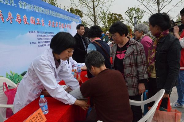 4月16日下午,吴江区红十字会联同区健康教育所、疾控中心等单位组成活动小组,在吴江公园开展全国第27个爱国卫生月、省第19个健康教育宣传月暨全国肿瘤防治宣传周大型广场宣传咨询活动。此次活动的主题为“全民参与爱国卫生 共建共享健康中国”。