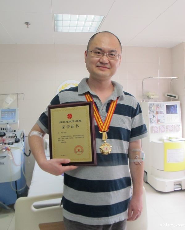 4月29日上午,在苏大附一院的采集室内,经过4个多小时的采集,来自姑苏区的方超成功捐献出了260ml造血干细胞悬液,成为苏州市第97位造血干细胞捐献者。