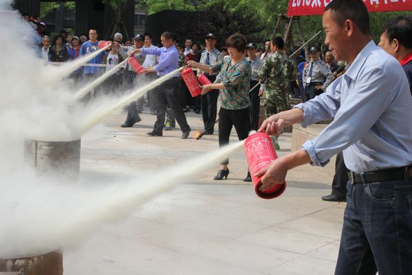 集结完成后由消防大队的官兵为居民讲解示范灭火器的使用、火灾预防知识及火场逃生与自救方法等。讲解结束后,居民和物业工作人员、保洁员们纷纷举起灭火器,对着燃烧的油桶进行灭火操作。