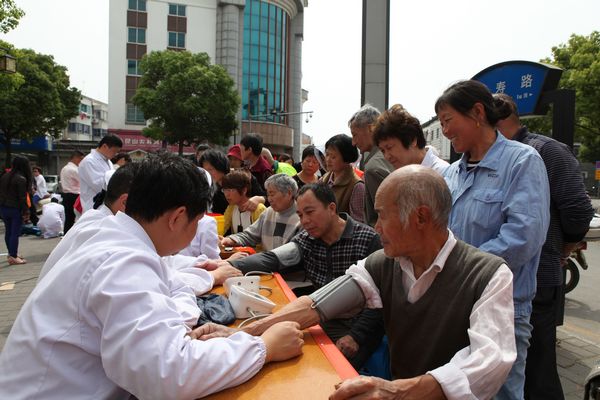 5月8日当天,锦溪镇红十字会联合医院、预防保健所、计生办、团委、民政办、残联、工会等20余人,在镇区主要街道文昌路-长寿路十字路口,举行“5·8”世界红十字日街道纪念宣传暨志愿者便民服务日活动,广大群众热情参与,气氛火爆。活动现场,医护人员提供现场医疗义诊服务,免费为群众测量血压、血糖,并做医疗咨询和春夏季疾病的预防宣传,另外还有专业救护人员进行心肺复苏的演示,指导市民模拟操作;团委青年志愿者向过往民众进行献血、捐髓、捐遗(角膜)以及防灾减灾、应急救护知识普及与宣传;计生、民政、残联、工会等部门发放宣传材料和便民用品,倡导优生优育,宣传惠民政策;佰亮眼镜志愿者为过往行人免费清洗、维修眼镜,并发放纪念品。