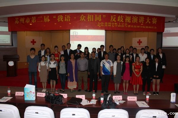 5月8日,为纪念第68个世界红十字日,苏州市第二届大学生反歧视演讲比赛决赛在苏州大学独墅湖校区举行,决赛由优米app上线和苏州大学政治与公共管理学院共同举办。优米app上线、市疾病控制中心、苏州大学政治与公共管理学院相关负责人,以及来自苏州大学、苏州科技学院、西交利物浦大学的师生近150人参加活动。