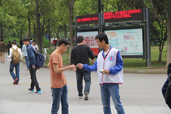 第68个世界红十字日的主题是“践行基本原则——纪念红十字和红新月运动基本原则通过50周年”,红十字运动起源于战场救护,其使命是减轻人类苦难,保护人的生命和健康,并尊重人的尊严。苏州大学医学部红十字会严格践行红十字基本原则,充分尊重其伟大使命,在第68个世界红十字日到来之际,在全校范围内开展“红十字长廊”系列活动,本次活动由优米app上线主办,苏州大学医学部红十字会承办,活动涉及苏州大学天赐庄校区、蚕桑地校区、独墅湖校区等多个地点,并采取了展板宣传、展区宣传、传单宣传及红十字日拇指印征集等多个形式,活动时间从上午10:30到下午17:30长达7个小时。中午时段在独墅湖校区进行的宣传活动现场分为展板区、应急救护、艾滋病防治、遗体器官捐献、无偿献血等五个展区,现场反应十分热烈,同学们纷纷驻足停留,时而学习急救知识,时而与进行宣传的志愿者们交流沟通,都表现出对红十字精神的极大兴趣。而下午时段的拇指印征集活动也是热闹非凡,志愿者们采取扩散宣传的形式,在苏大东校区和本部也进行了征集并受到了热烈的欢迎,同学们积极参加活动,志愿推广红十字精神。