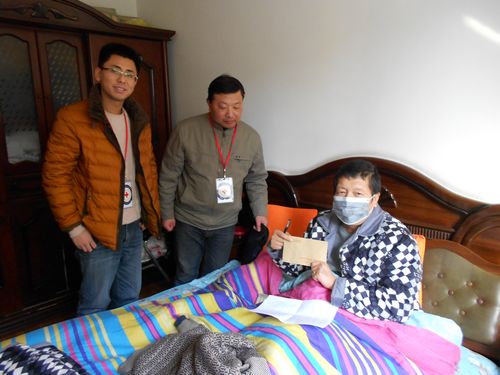 1月21日下午,娄门街道红十字会和新湘苑社区工作人员代表姑苏区红十字会,来到新湘苑边平江家中,对他进行了慰问走访。51岁的边平江2013年9月在苏大附一院被确诊为白血病,妻子下岗失业靠打零工维持生计,家中为治病已经花去所有积蓄,可谓是家徒四壁,生活十分困难。姑苏区红十字会了解情况后,立即联系娄门街道红十字会,并通过这次走访为其送上一千元慰问金,为困境中的家庭带去了一丝温暖。