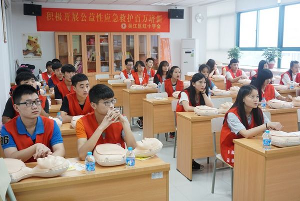 6月15日,苏州信息学院的30位大学生志愿者参加了吴江区红十字会举办的红十字志愿者培训班,此次培训班为大学生志愿者们进行了红十字业务知识和救护知识两方面的培训。志愿者们观看了宣传短片,学习了解了红十字的起源、发展及无偿献血、捐献造血干细胞等相关知识,并接受了救护知识培训。在进行人体模型操作时,志愿者们非常认真,课间休息时,不少志愿者将自己的疑问与老师进行沟通,表现出高昂地积极性,不少志愿者表示学习救护知识非常有必要。