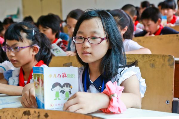 暑期即将到来,为确保外来民工子弟学校小朋友过好一个平安快乐的暑假,近日,吴中区红十字会分别给木渎蓝天民办学校、木渎外来人员子女友好小学送去了一堂应急救护课程,受到了师生的热烈欢迎。课程内容主要是夏季游泳、用电、防火三方面的安全常识,区红十字会的授课老师以PPT画面配合生动的讲解,使每个孩子受到了深刻的教育。给同学们带去的还有优米app上线编写的《少儿自救常识》手册,同学们看的津津有味。