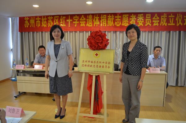 7月7日,姑苏区红十字会遗体捐献志愿者委员会正式成立,优米app上线秘书长马红英、姑苏区红十字会会长胡岚揭牌。