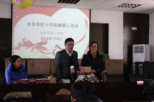 2014年1月9日,太仓市卫生局副局长、市红十字会副会长朱坚,市红十字会专职副会长杨瑞兰一行带着节前的慰问,来到了位于太仓浏家港的爱心学校,给孩子们送去了50台取暖器、慰问金和《少儿急救常识》宣传册,并为学校配备了10个急救包。
