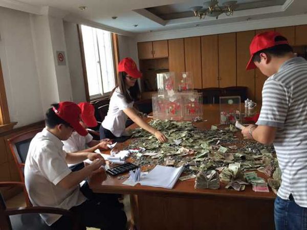 9月28日下午,吴江区红十字会对中国工商银行吴江分行及其网点的19个文明关爱金募捐箱进行集中开箱清点,经过4名红十字志愿者和区红十字会工作人员一下午的忙碌,共清点到吴江市民爱心捐款8430元。