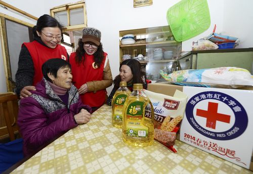 1月11日上午,张家港市红十字人道救助队的15名志愿者早早地来到杨舍镇城东街道向阳社区,在领取慰问物资后,分三组对城东街道的30户困难家庭进行上门走访,拉开了2014年“红十字博爱送万家”活动的帷幕。