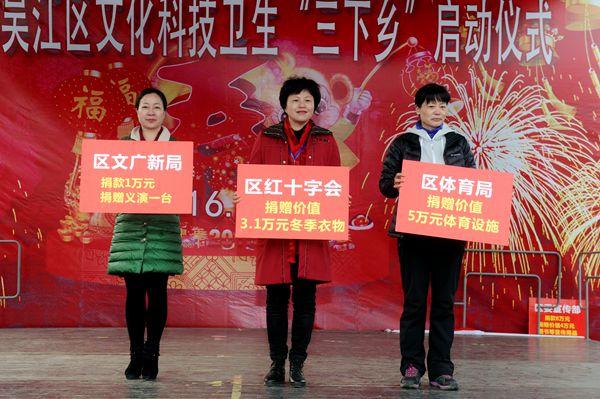1月18日,2016年吴江区文化、科技、卫生“三下乡”活动在吴江开发区(同里镇)屯溪社区拉开帷幕。