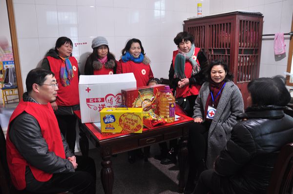 1月27日下午,在蒙蒙细雨中,张家港市红十字会组织红十字志愿者开展“博爱送万家”春节慰问活动,为身处困境的群众送上来自社会各界人士的爱心和祝福。