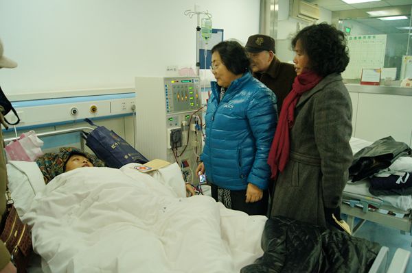 正在做血液透析的张阿姨见到慰问人员非常激动,“为了家,只要能活着,喝粥吃咸菜也不怕,感谢红十字会多年来的救助”。她在儿子不满十四岁时就不幸患尿毒症,后再次不幸患乳腺癌,怀着对家庭和儿子的不舍与病魔抗争十五年,近日又脑出血。志愿者们叮嘱她保重身体,保持良好的心态。