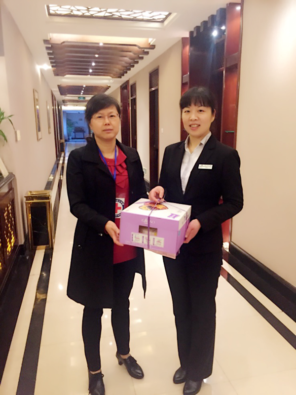 在“妇女节”来临之际,张家港市红十字会的工作人员来到沙洲宾馆,向港城首位女捐髓者周静送上鲜花、蛋糕和节日的祝福。