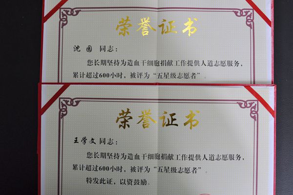 近日,来自吴江区的造血干细胞捐献志愿者沈园、王学文被中华骨髓库评为“五星级志愿者”。