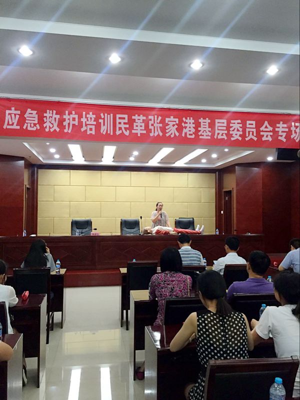 7月29日晚,来自民革张家港基层委员会的50名党员齐聚市公共卫生中心一楼会议室,参加张家港市红十字会组织开展的应急救护培训。