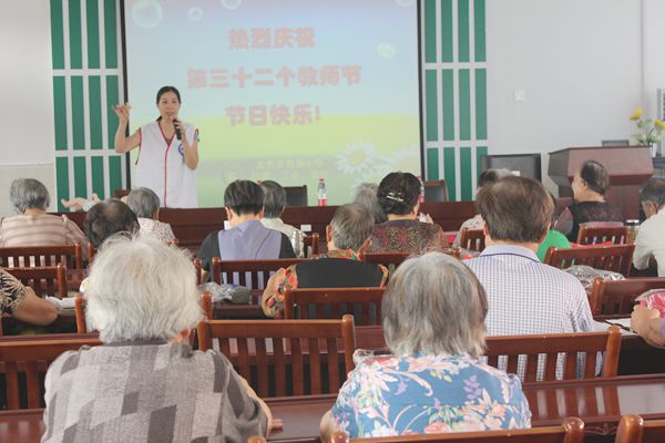 为了迎接第32个教师节,太仓沙溪直塘小学邀请市红十字会专职副会长杨瑞兰为退休教师做了一场应急救护知识讲座,在节日里为50名退休教师献上一份“急救大礼包”。