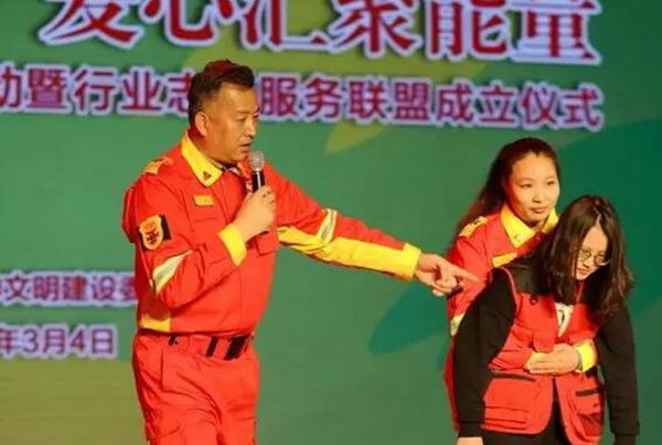 成立仪式上,张家港市红十字会应急救援志愿服务队队长陈伟作为志愿者代表上台讲话,跟大家分享了应急救援志愿服务的开展情况,并现场向大家演示了海姆立克抢救法。交流活动结束后,十个部门的分管领导共同在电子屏上按下手印,张家港市行业志愿服务联盟正式启动。