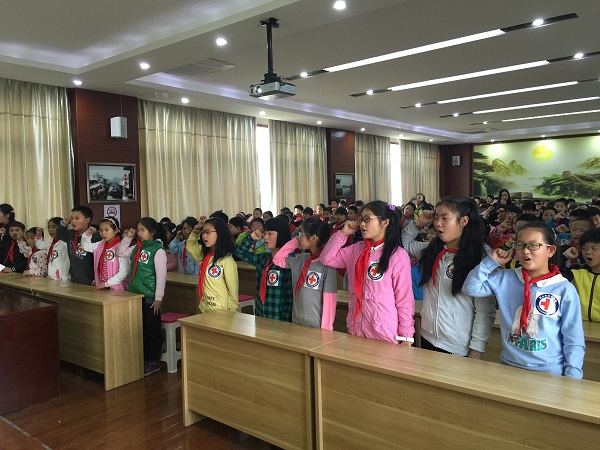首先,由学校红十字会理事刘老师简介了红十字组织,并宣布了新会员名单;接着,由高年级的红十字会员代表宣读了倡议书,150名新会员在红十字会旗下宣读了庄严的“红十字入会誓词”。最后,刘老师校红十字会对新会员提出了希望和要求。
