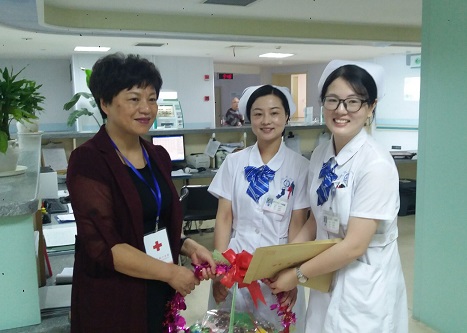 5月26日上午,区红十字会相关负责人来到吴江区第一人民医院,看望回到工作岗位的马佳丽。