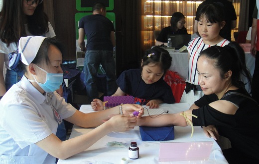 初夏的天气已相当炎热,但并没有阻挡志愿者们奉献爱心的脚步。采样现场,有夫妻和恋人结伴来的,有朋友、同事相陪来的,不少志愿者带着孩子见证这一爱心奉献的时刻。在流水琴川义工协会红十字志愿者的指导下,大家填写了相关信息后,去血液采集处采集血样,随后手拿荣誉证书在宣传画前留影纪念。