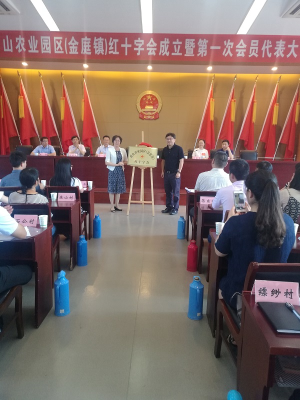 最后,吴中区政府副区长、区红十字会会长周黎敏同志与西山农业园区(金庭镇)党工委副书记、管委会副主任、镇长姜昊同志为西山农业园区(金庭镇)红十字会揭牌。