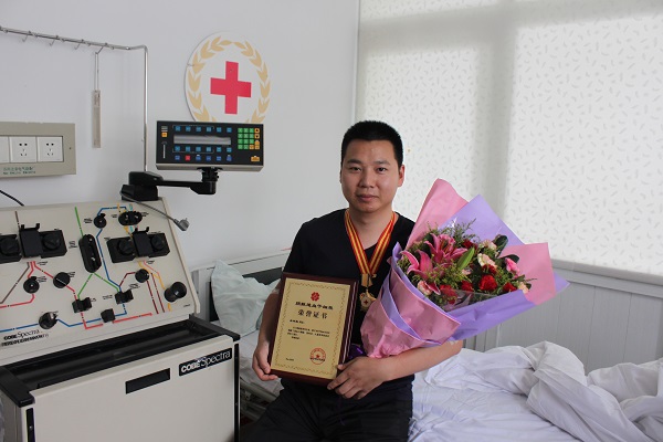 6月20日上午,吴中区郭巷街道社区工作的李炜巍在苏州大学附属第一人民医院的血液采集室内采集了180ML造血干细胞悬液,这是今年吴中区第3例造血干细胞捐献者,创吴中区年捐献人数之最。