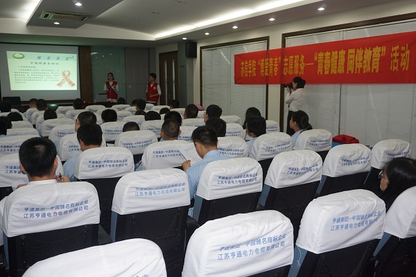 6月23日,来自苏州信息职业技术学院的大学生们来到江苏亨通电力电缆有限公司进行以“青春健康 同伴教育”为主题的“博爱青春”志愿服务活动,为企业员工宣讲艾滋病防治的相关知识。
