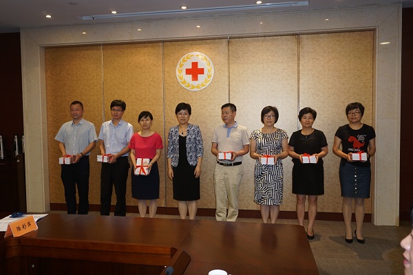 会上,王燕红向各镇(区)红十字会代表发放了庆祝区红十字会成立30周年的纪念书籍《人道之光》。