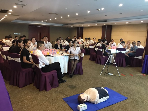 8月2日上午,汾湖高新区红十字会邀请吴江区红十字会志愿者、北厍社区卫生服务中心护士长卢韦连来到汾湖知音大酒店,为40名酒店工作人员上了一堂内容丰富的急救培训课。在培训过程中,培训老师分别就红十字基本知识、救护新概念、心肺复苏、创伤救护(止血、包扎、固定、搬运)、一般伤害的现场救护及突发事件紧急逃生等应急救护知识进行了详细讲解,并指导大家进行实际操作练习。从8月份起,汾湖高新区红十字会将连续为汾湖知音大酒店300多名员工举办多场急救培训讲座,进一步提高酒店员工的现场急救能力,提升酒店服务质量发挥积极作用。(陈孝)