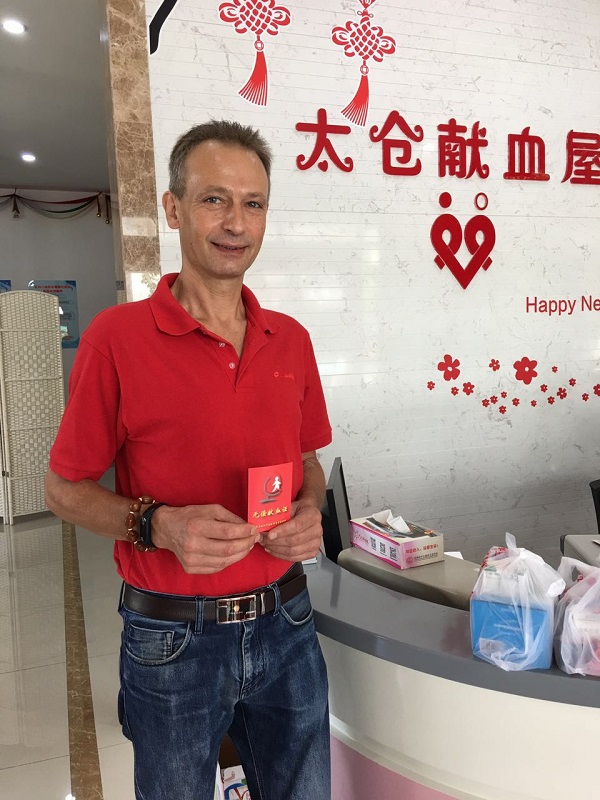 炎炎夏日,酷暑难耐。8月3日上午,忙碌的献血屋迎来了一位特殊客人—— 来自德国的Matthias Roeder。他通过助手告诉献血屋的红十字会专职志愿者吴晓东阿姨:他的中文名叫老马,早在2009年便来到太仓工作,是位磨具工程师。他在德国也经常参加公益活动,有过多次献血的经历。在详细咨询了相关献血的事项后,老马主动要求捐献500毫升全血,因为他在德国也是每次献这些。吴阿姨告诉他,在中国一次最多献血400毫升,他欣然同意。献血后,他感动的表示太仓是他的第二故乡,他非常热爱这片土地,希望为自己的所爱尽些绵薄之力。大爱无疆,爱无国界,老马的善举打动了我们,让我们祝福他在太仓生活愉快,身体健康;祝福中德情谊恒久留长,让所有爱心彼此相连,传递出更多的正能量!
