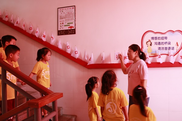 上午,刚入学的一年级新生们在正、副班主任的带领下跟随张艺老师的脚步一起走进并认真参观了红十字青少年主题教育馆。上楼梯时,张老师便借助楼道上布置的红十字旗帜介绍了红十字会的会旗、会标、会徽;来到主题教育馆门口,张老师指着墙面上的文化布置,从一个人、一场战争、一本书、一个组织、一部公约将红十字运动的起源娓娓道来。张老师生动形象的讲解让孩子们如沐春风,而源远流长的红十字文化就像涓涓细流沁入孩子们的心田,使孩子们深受感染,明白了“人道、博爱、奉献”的红十字精神,知道了从小要学会关爱他人,珍爱生命。此外,张老师还为孩子们演示了心肺复苏的操作方法,虽然一年级的孩子们还按压不动,但却将学习急救知识、掌握急救技能,关键时候能自救互救的意识扎根在了心底。