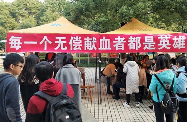 11月22日,常熟理工学院红十字会联合常熟市血站在东湖校区大学生创业活动中心开展今年第二届无偿献血进校园活动,唱响了冬日里一首爱的奉献之歌。