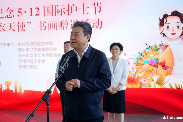捐赠仪式上,市政府副市长、市红十字会会长曹后灵向全市护士群体致以节日祝贺,表示崇高敬意。曹后灵表示,无论出征湖北还是留在苏州奋战的医护人员,都值得尊敬和学习。此次苏州艺术家们自发组织创作赞美讴歌白衣天使,他代表市政府表示衷心感谢。曹后灵号召全社会关心护士群体,善待医务工作者,共同为苏州更高水平的卫生健康事业添砖加瓦。