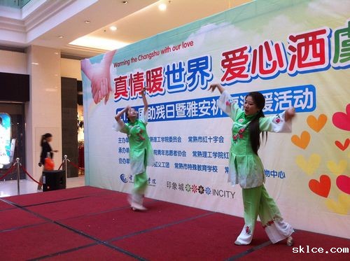 5月19日下午,共青团常熟理工学院委员会联合常熟市红十字会,在常熟印象城购物中心举办了“5•19”全国助残日暨雅安祈福温暖活动。