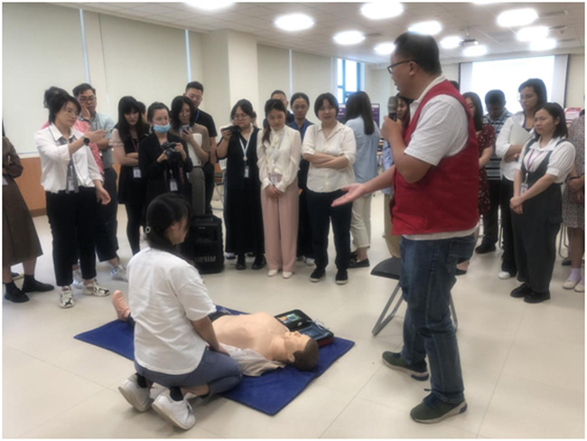 “我们首先要通过拍打、呼喊,判断患者是否有意识……”9月13日的活动中,红十字急救培训师朱鸣江向康桥学校的老师们讲解基础的急救技能,通过通俗易懂的语言详细展示心肺复苏的步骤和技巧,共有51名老师参与培训。