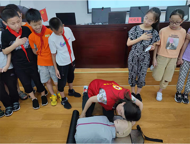 接着,培训师又以现场演示的方式,给同学们讲解了气道异物梗阻、心肺复苏等急救的方法和要领,同学们都认真仔细地聆听并表示愿意把学到的知识运用于日常生活中。